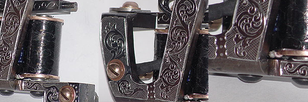 (Waters) "V" frame fully engraved with twisted spring saddle support.