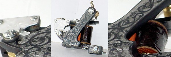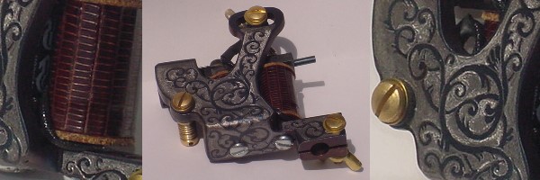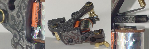 (Waters) "V" frame fully engraved with old coins as coil tops.